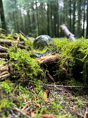 I like how these turned out and I think that they clearly show how they distort the background. However, I think these may have been more successful if I either included less of my wrist or if I was not wearing anything on my wrist so that the main focus of the image is solely on the lens ball, not the clothes being worn. However, despite these factors, I still think these look cool and show different perspectives within the forests and I also like the contrast between the lense ball and the blurry background, but if I were to take photos similar to this again i'd have to be cautious to make sure the focus remains on the lens ball and there is no further distraction.